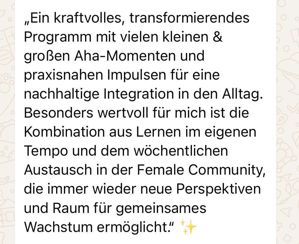 Weiblicher Erfolg fühlt sich nicht wie Kampf an – sondern wie Flow, Schöpferkraft und Erfüllung.Im Sheset integrierst du alles, was du auf deiner Reise gelernt hast. Du entwickelst eine klare berufliche Vision, führst dich selbst mit Liebe und Klarheit – und baust Erfolg, der sich wirklich nach dir anfühlt. Hier beginnt deine neue Art zu leben, zu wirken und sichtbar zu sein.